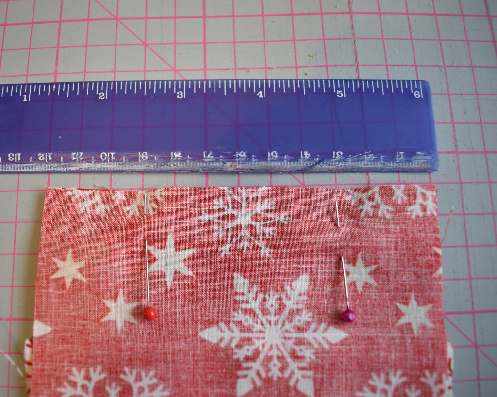 I place the pins for the gap or ‘doorway’ vertical as this helps me remember not to sew here.