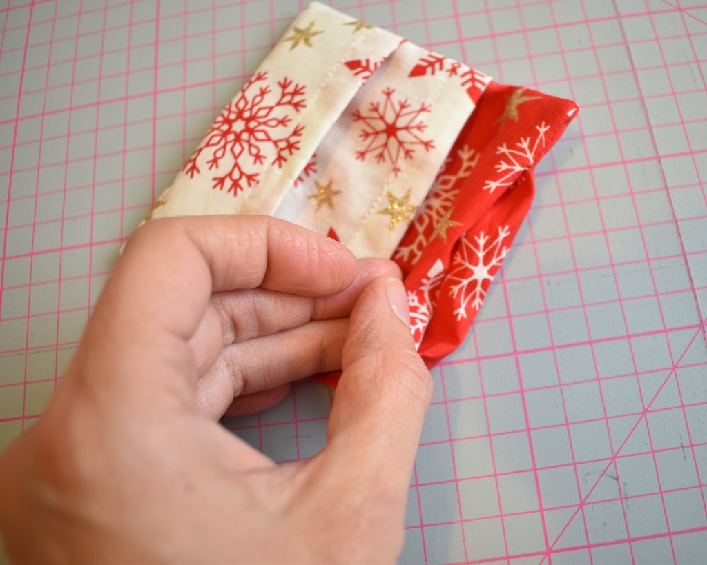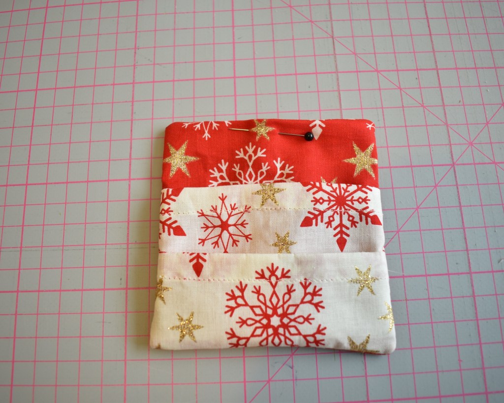 Smooth the wallet out and iron the hems of the gap flat if necessary before pinning together. Using a simple ladder stitch to close the remaining gap.