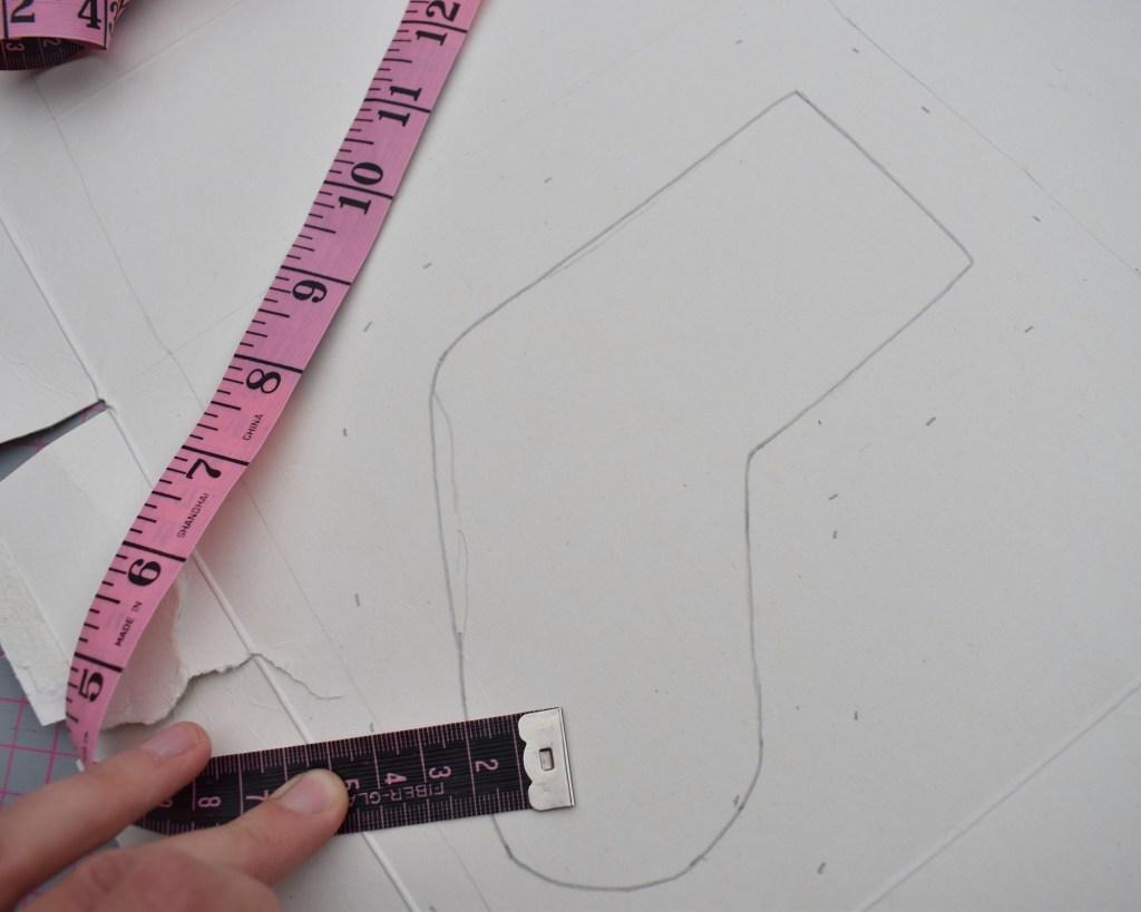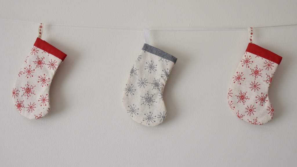 1) First of all you will want to make templates for whatever shape you want to use. For my bunting I opted for traditional triangles, baubles, stockings and hearts.