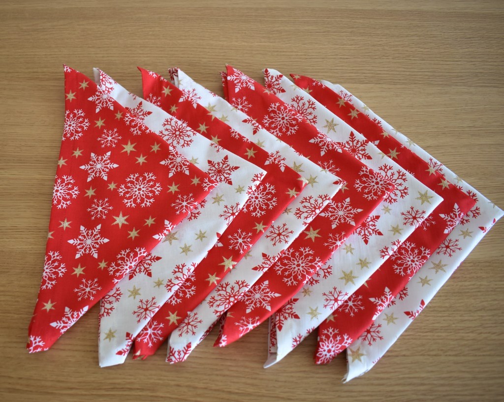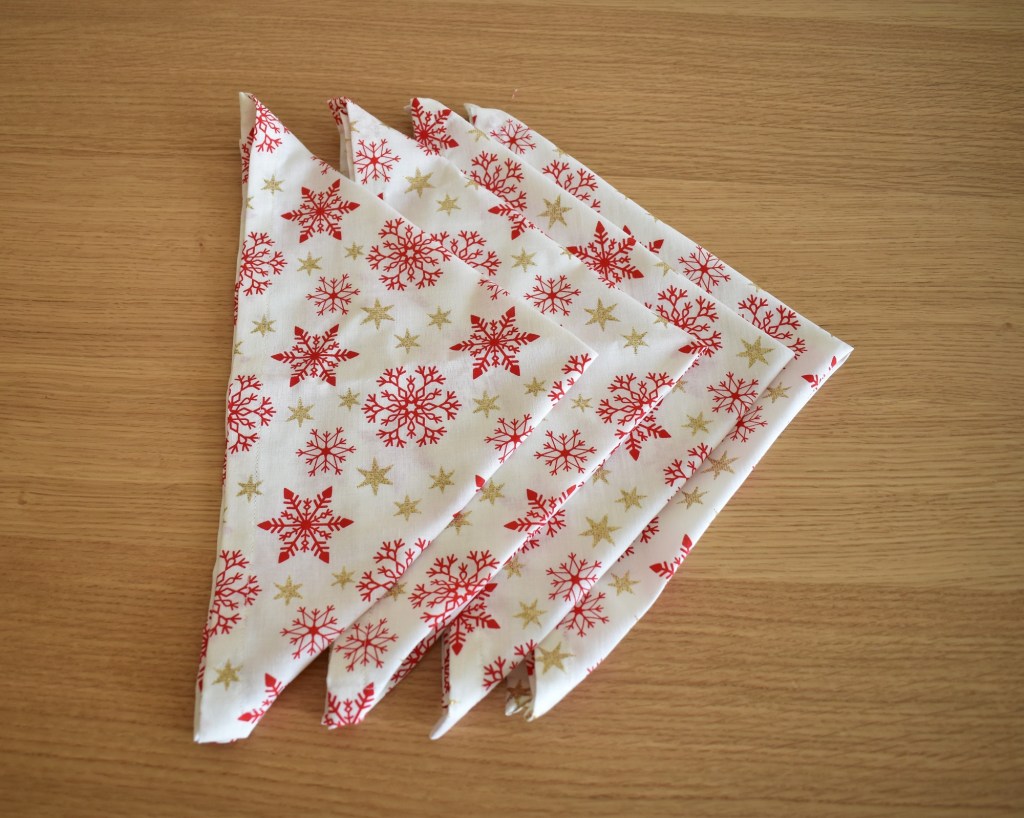 2) Using pinking shears cut out the shapes. This is the easiest option as pinking shears create an attractive triangular edge that helpfully prevents fraying, meaning you can use these year after year. If you don’t have pinking shears, or you like a more rustic look you can also just use a regular pair of scissors and embrace any fraying as part of the design.